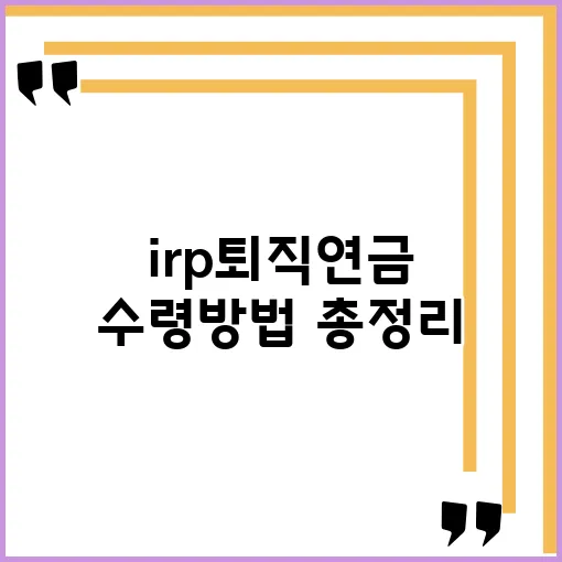 자, 이제부터는 irp수령방법에 대해 알아보겠습니다. 퇴직 후 수령하는 방법은 여러 가지가 있으며, 선택한 방법에 따라 세금과 수령 금액이 달라질 수 있습니다. 그래서 신중한 선택이 필요합니다.