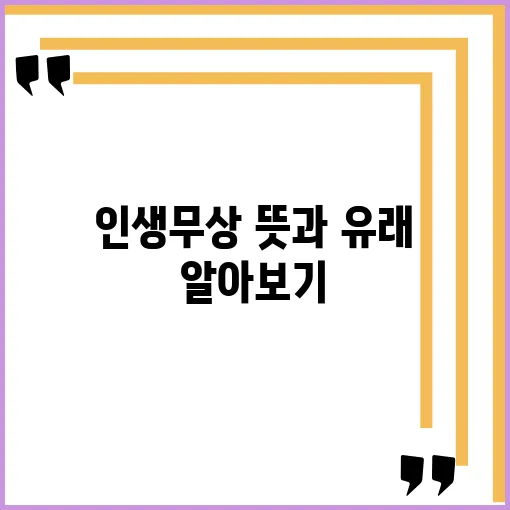 인생무상의 유래는 불교에서 시작되었습니다. 불교에서는 삶의 본질이 무상하다고 강하게 믿습니다. 모든 것이 항상 변하며, 고통이 수반되는 것이 인생이라는 생각이죠. 이러한 불교의 관점을 통해, 우리는 우리의 삶에서 일어나는 크고 작은 변화들을 더 잘 이해할 수 있습니다.