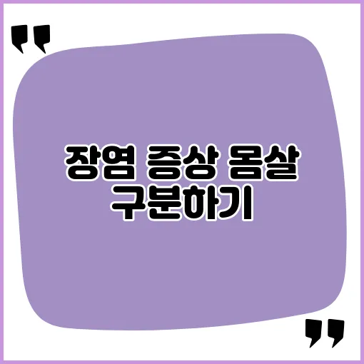 장염은 주로 복통, 설사, 구토 등의 소화기 증상이 나타나며, 몸살은 전신 피로감, 근육통, 발열 등의 전체적인 불쾌감을 유발합니다. 장염은 주로 배가 아프고 설사와 함께 고통을 동반하지만, 몸살은 통증과 피로가 전신에서 느껴집니다.