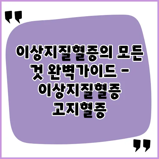 이상지질혈증은 혈중 지질 수치가 비정상적으로 증가하거나 감소하는 상태를 말합니다. 일반적으로 고지혈증(고콜레스테롤혈증 또는 고중성지방혈증)과 관련이 많습니다. 이 상태는 심혈관 질환 및 기타 건강 문제의 위험성을 높일 수 있습니다.