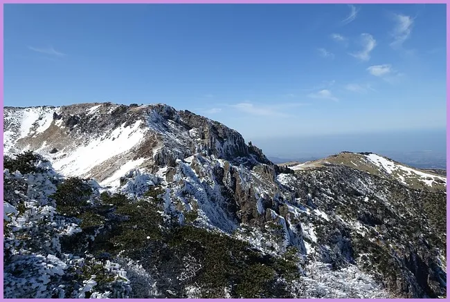 겨울철에는 기온이 매우 낮아 미끄러운 구간이 많습니다. 따라서 항상 주의가 필요하며, 체력에 맞는 속도로 이동해야 합니다. 또한, 등산 중에 무리하지 말고 주변 환경을 잘 살펴야 하며, 눈사태와 같은 자연 재해에 대한 경각심도 가져야 합니다.